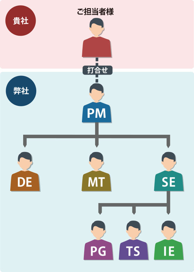 ※貴社がPMを行う場合は擬似的なPMとなります。(弊社PM補助が貴社と打ち合せし弊社メンバーへの指揮命令を行います)